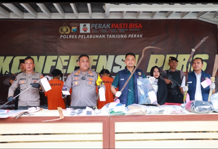 Atas peristiwa tersebut, anggota Satreskrim Polres Tanjung Perak berhasil mengamankan enam pelaku yakni, AR (19), M.AF (19) warga Randu Barat Surabaya, GMP (18) warga Kedinding Tengah Baru Surabaya, dan MBM (18) warga Rangkah Rejo Lebar Surabaya.