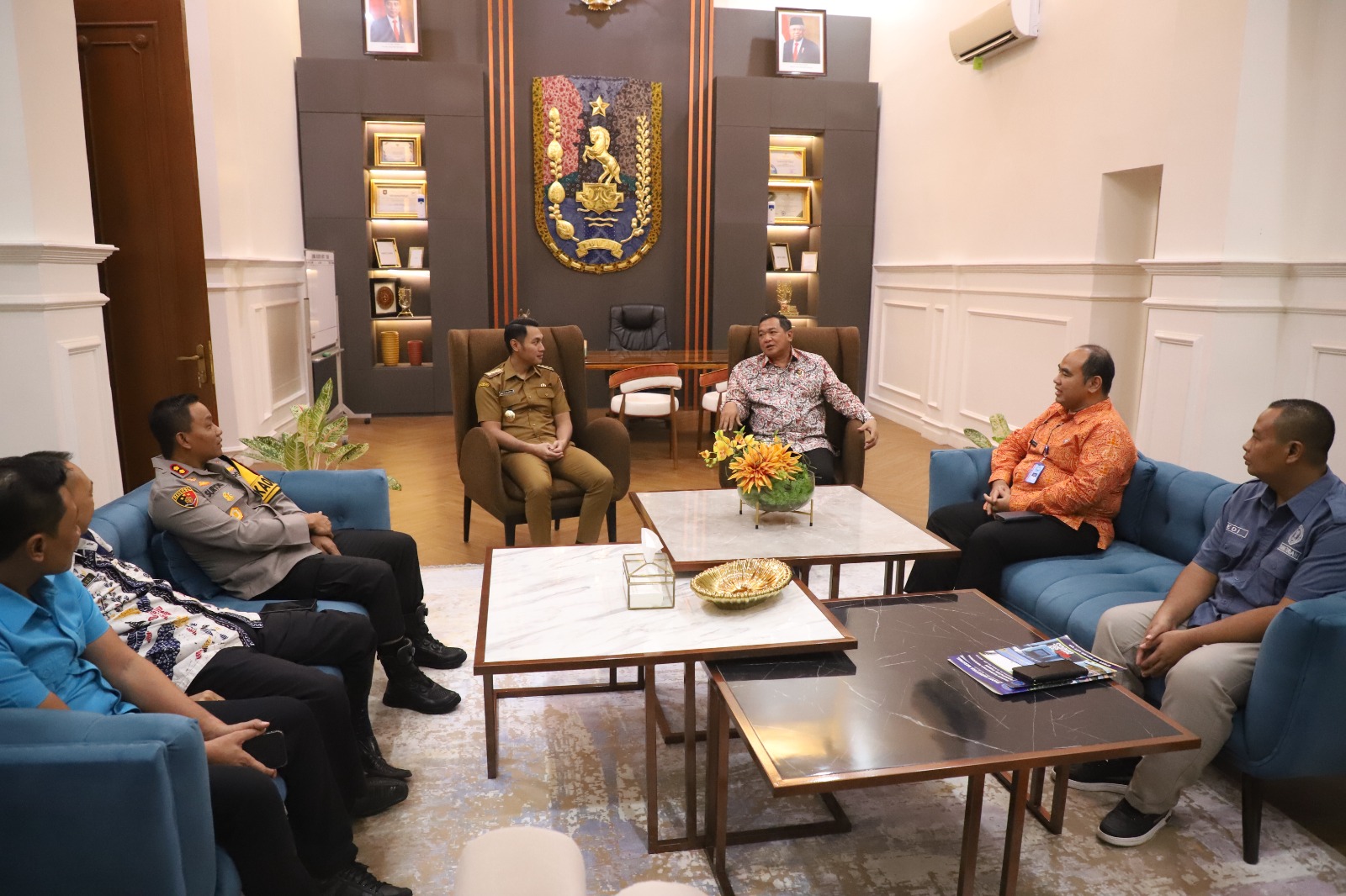 Tuban,memoterkini – Bupati Tuban, Aditya Halindra Faridzky, SE., kunjungan kerja Kepala Badan Narkotika Nasional (BNN) Provinsi Jawa Timur, Brigjen. Pol. Drs. Mohamad Aris Purnomo di ruang kerja Bupati Tuban Kompleks Pendopo Krida Manunggal, Selasa (30/04/2024). Pertemuan kali ini juga dihadiri Kepala BNN Kabupaten Tuban, Tri Tjahyono, dan Kapolres Tuban, AKBP Suryono.