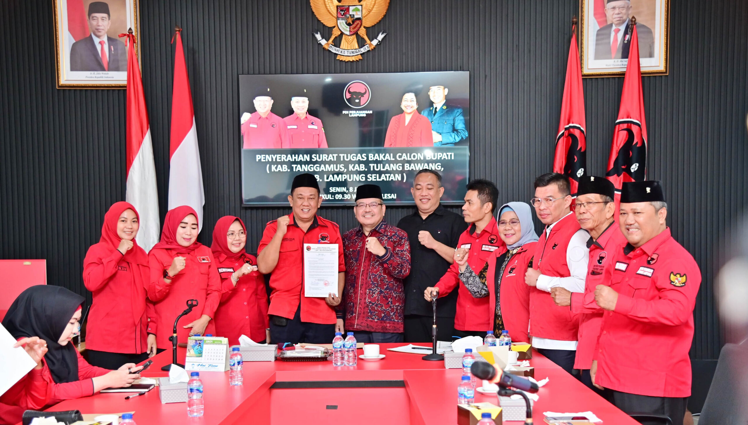 Surat Tugas itu diserahkan Wakil Ketua Bidang Ideologi dan Kaderisasi DPD PDI Provinsi Lampung, H. Watoni Noerdin, S.H., M.H., kepada Sekretaris DPC PDI Perjuangan Lampung Selatan, H. Syahirul Alim, S.H., M.H., di Kantor DPD PDI Perjuangan Provinsi Lampung, Senin (8/7/2024).