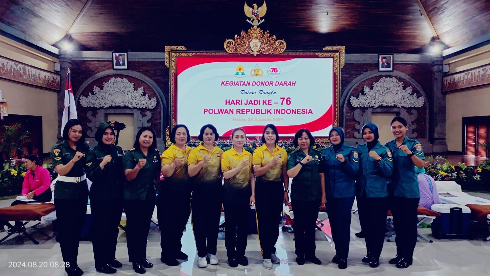 Donor darah kali ini Polwan Polda Bali gandeng Palang Merah Indonesia (PMI), dan diikuti perwakilan personil dari masing-masing Satker Polda dan Bhayangkari.