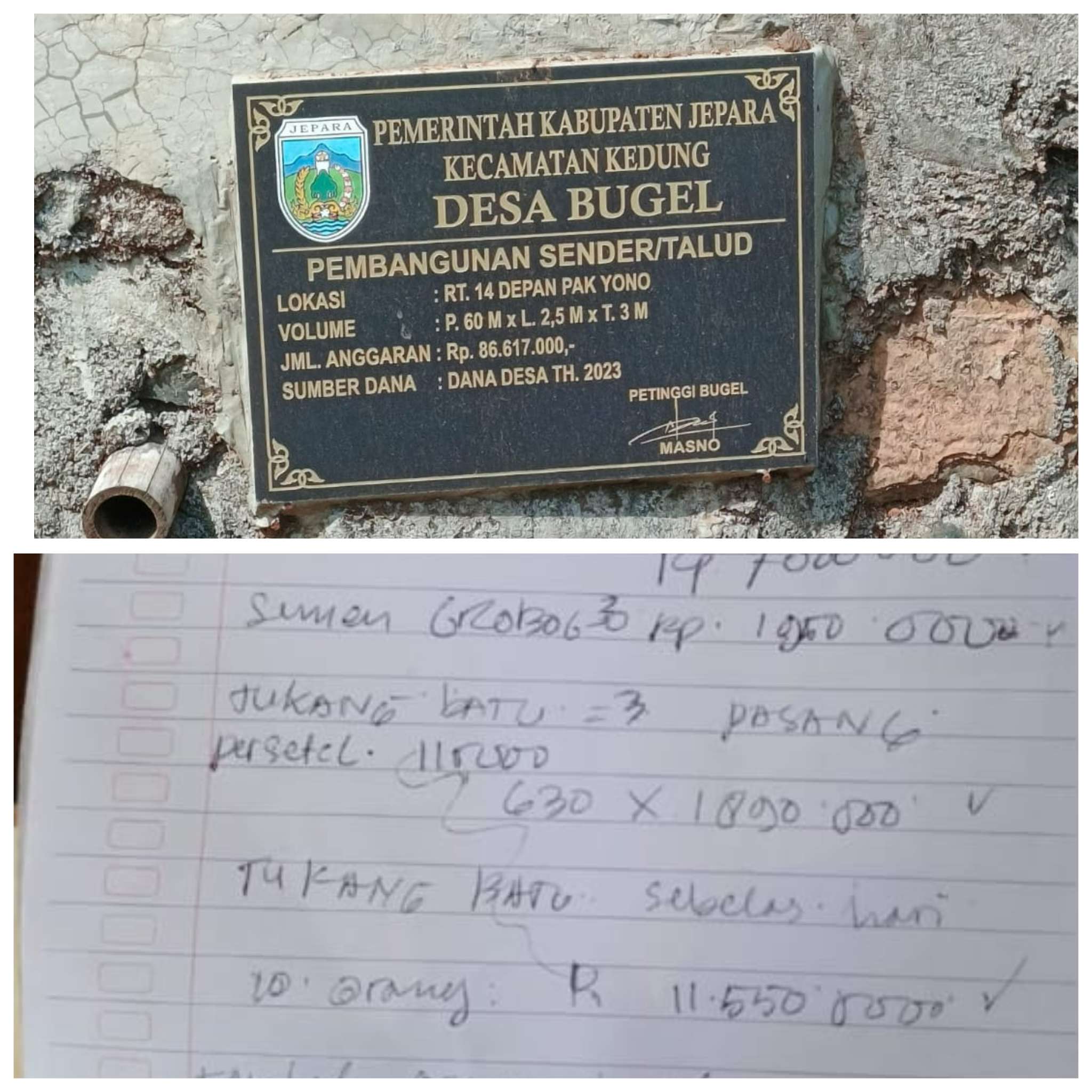 Jepara, memoterkini.com – Saat di konfirmasi selaku pk desa kasdono mengerjakan sender atau talud belum genap satu tahun kondisinya rusak parah.