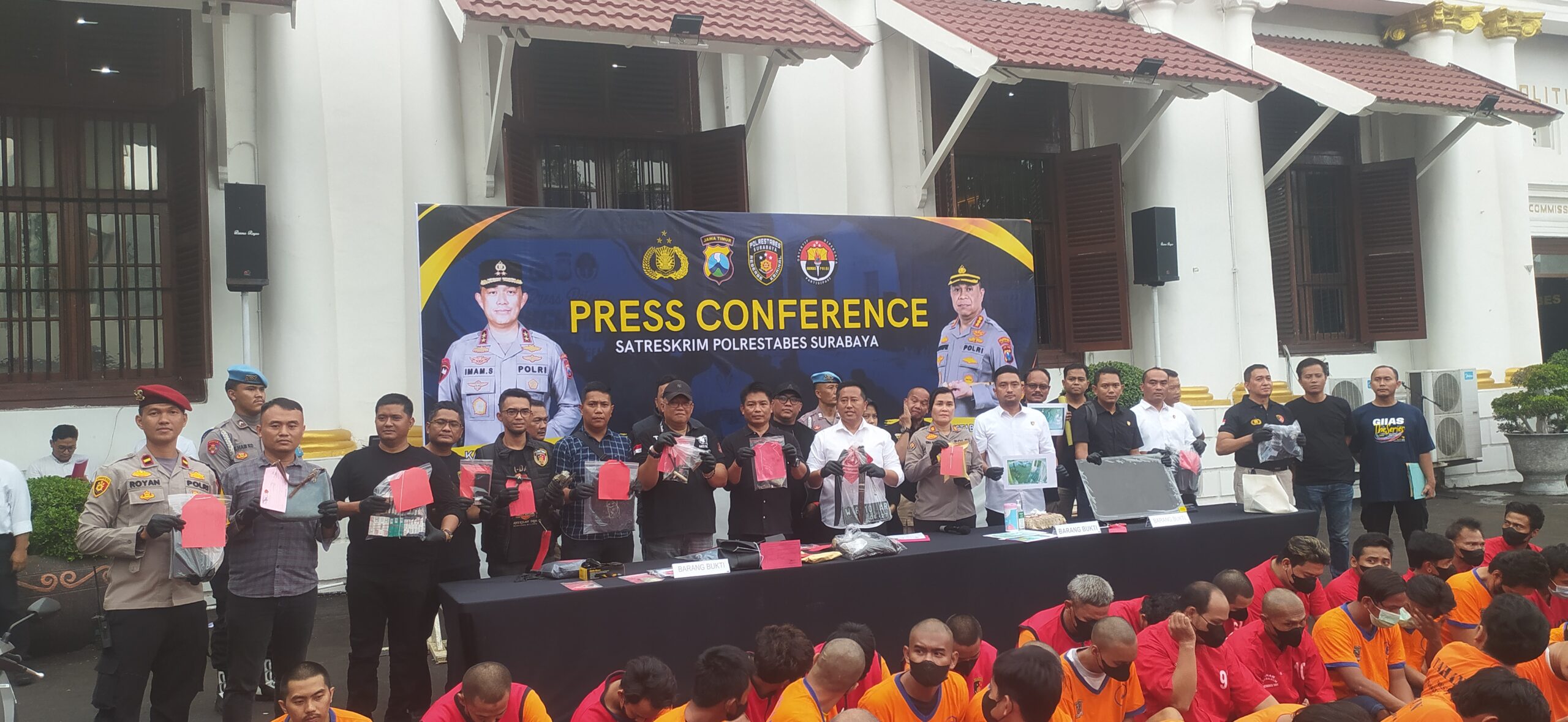 Surabaya, Memoterkini.com – komitmen Polrestabes Surabaya untuk menciptakan rasa aman di wilayah hukum Polrestabes Surabaya.Kali ini Polsek Jajaran dari Polrestabes Surabaya berhasil membekuk 62 orang pelaku tindak kriminal pencurian dengan pemberatan (Curat), pencurian dengan kekerasan (Curas) dan pencurian kendaraan bermotor (Curanmor) atau 3C.