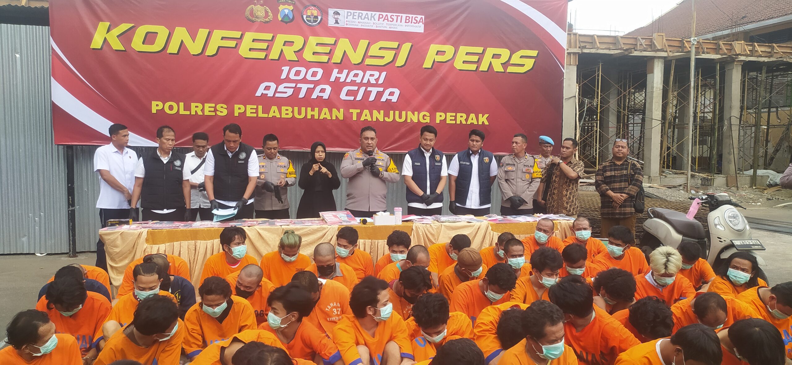Kapolres Pelabuhan Tanjung Perak AKBP William Cornelius Tanasale mengungkapkan dari operasi tersebut, polisi menyita barang bukti berupa 129,98 gram sabu-sabu, 533,71 gram ganja, sembilan butir ekstasi, 1.970 butir obat keras jenis pil LL, uang tunai sebesar Rp1.910.000, serta 30 ponsel yang digunakan untuk aktivitas transaksi, Dari pengungkapan ini kami menyelamatkan 2.400 jiwa manusia dari penyalahgunaan Narkoba.