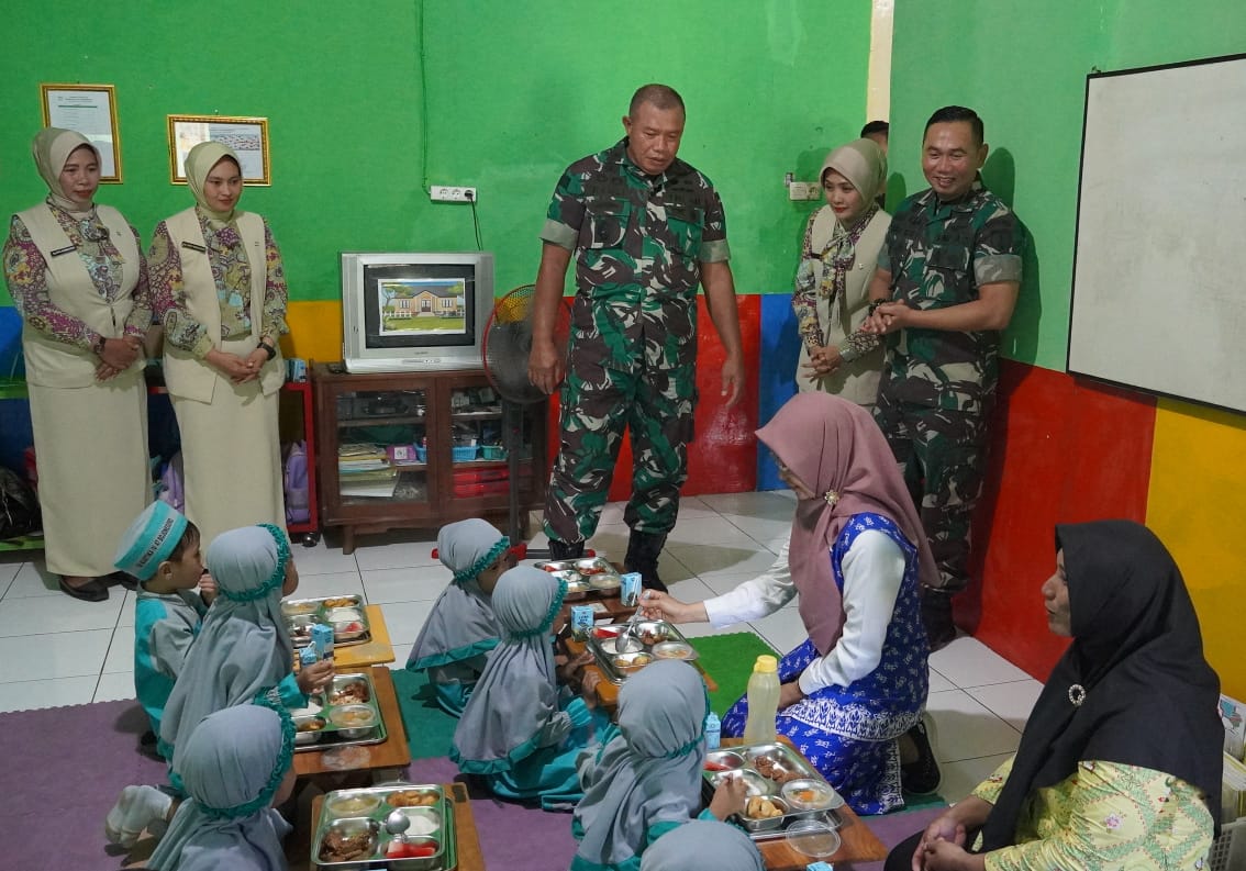 Disampaikan juga bahwa kegiatan tersebut sebagai wujud dukungan program prioritas Presiden Republik Indonesi, Prabowo Subianto dan Wakil Presiden Gibran Rakabuming Raka lima tahun kedepan. “Kegiatan kali ini masih bersifat uji coba. Makan sehat dan bergizi sebanyak 225 porsi secara gratis itu kita berikan kepada para siswa TK Kartika IV-47, TK Bustanul Anfal dan SDN Ledok Wetan 1,” jelas Letkol Czi Arief Rochman Hakim, SE., MM.