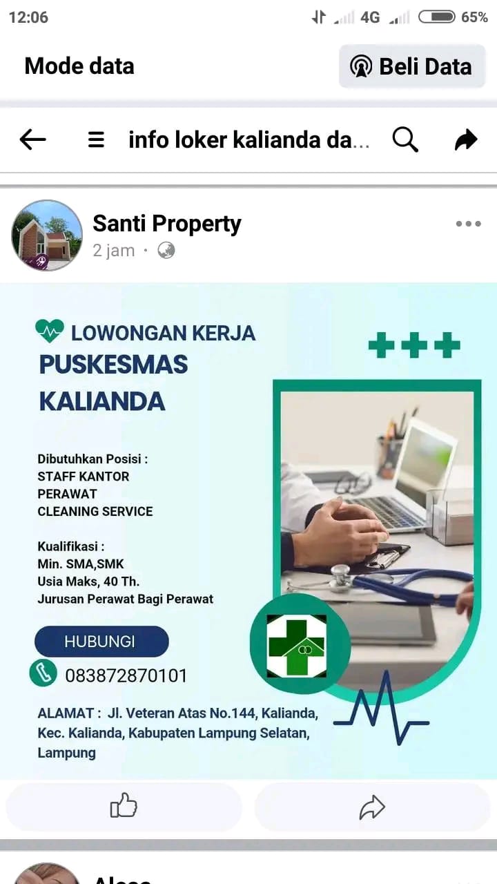 Kalianda – Beredar di media sosial sebuah gambar berisi informasi lowongan kerja mengatasnamakan UPTD Puskesmas Kalianda. Selain di media sosial, informasi lowongan kerja tersebut juga beredar melalui pesan WhatsApp dan surat elektronik.