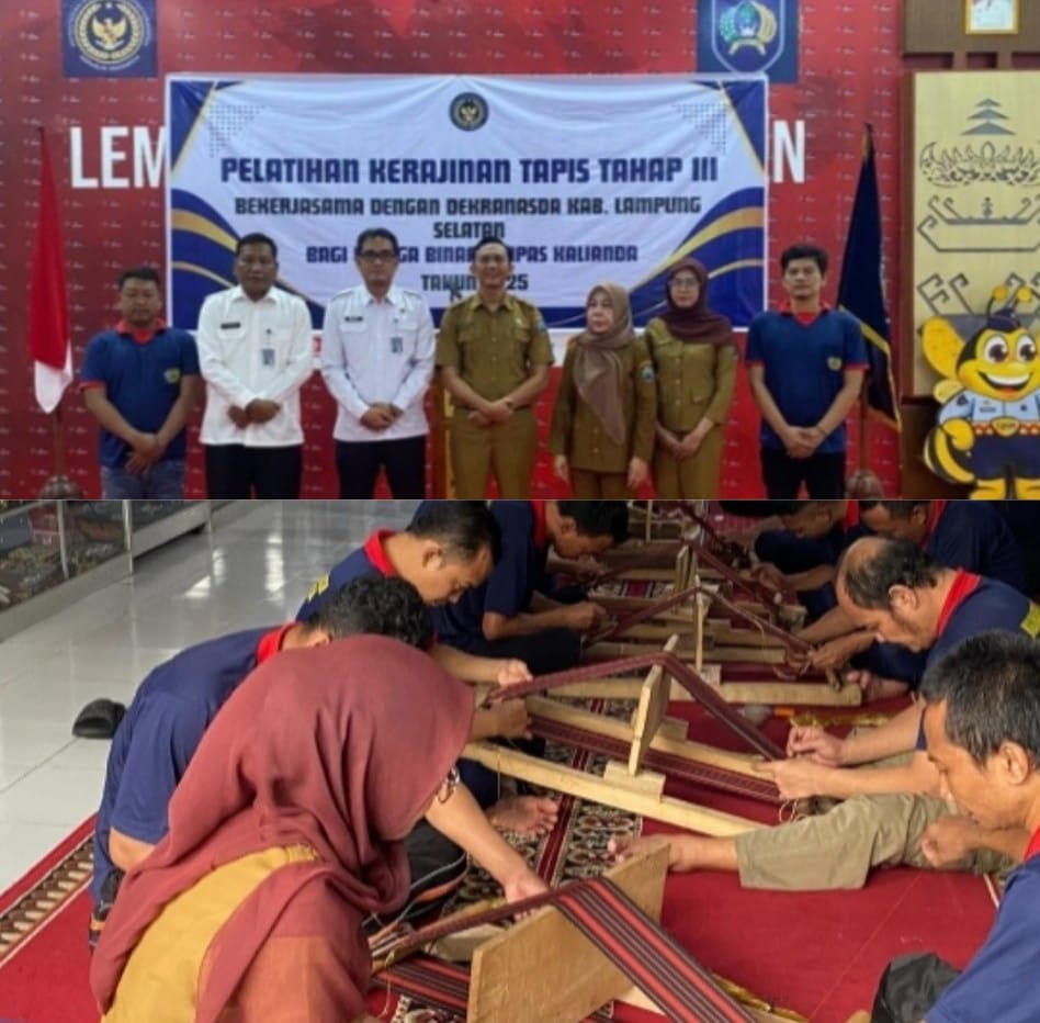 Lampung Selatan – Lapas Kelas IIA Kalianda kembali melaksanakan pelatihan kerajinan tapis tahap III bagi warga binaan, Senin (14/7). Kegiatan ini merupakan kerja sama berkelanjutan dengan Dewan Kerajinan Nasional Daerah (Dekranasda) Kabupaten Lampung Selatan, serta Dinas Perdagangan dan Perindustrian Lampung Selatan.