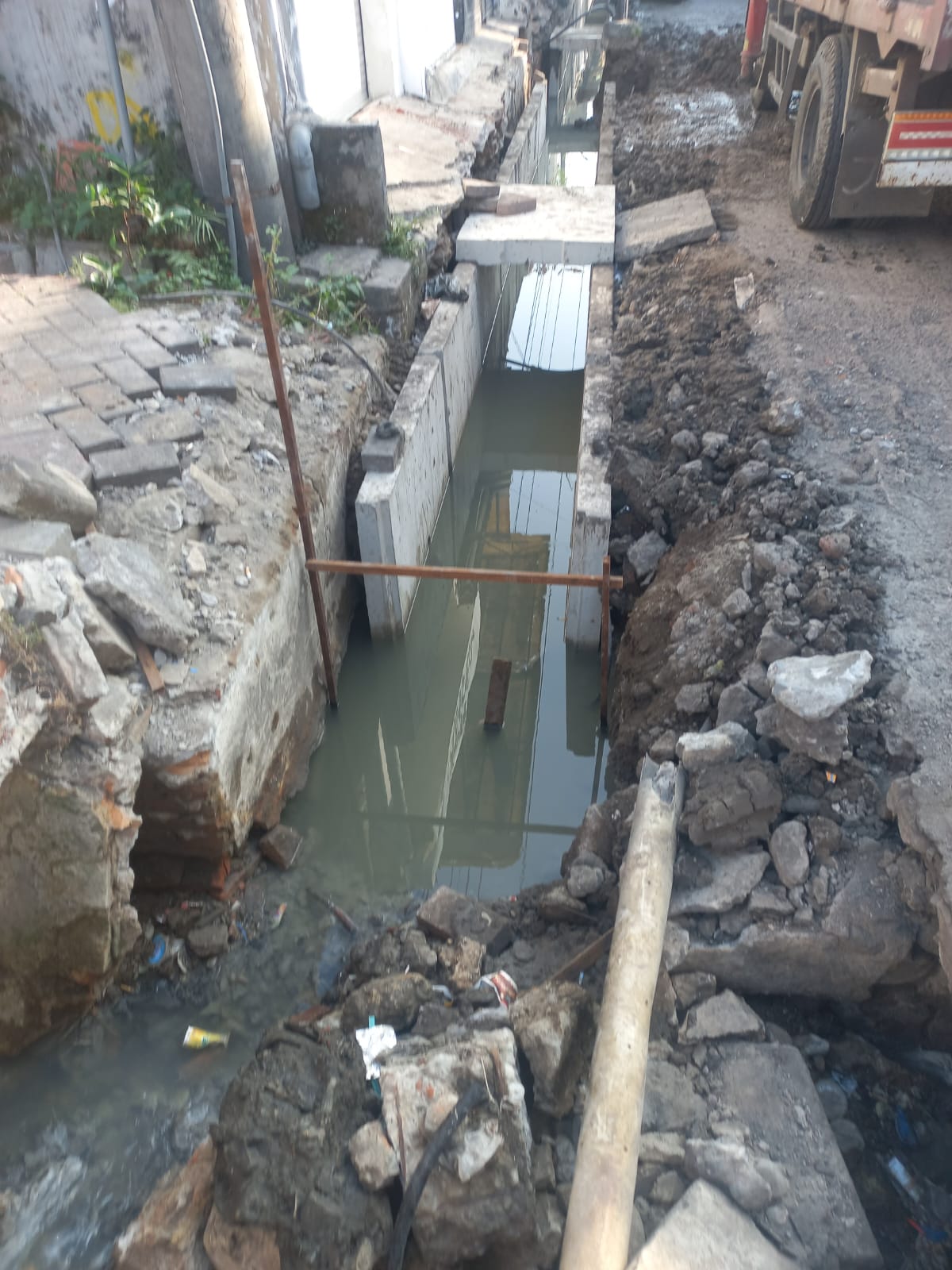 Mengacu dokumen kontrak pada BOQ (Bill of Quantites), RKS (Rencana Kerja dan Syarat), TKDN (Tingkat Komponen Dalam Negeri), pemasangan dijalan raya seharusnya memakai lantai kerja dengan rabatan beton atau cor setempat, dikarenakan jalan tambak segeran wetan boleh dilalui mobil bertonase besar yang kalau dilintasi akan tetap presisi dan tidak berubah atau bergelombang