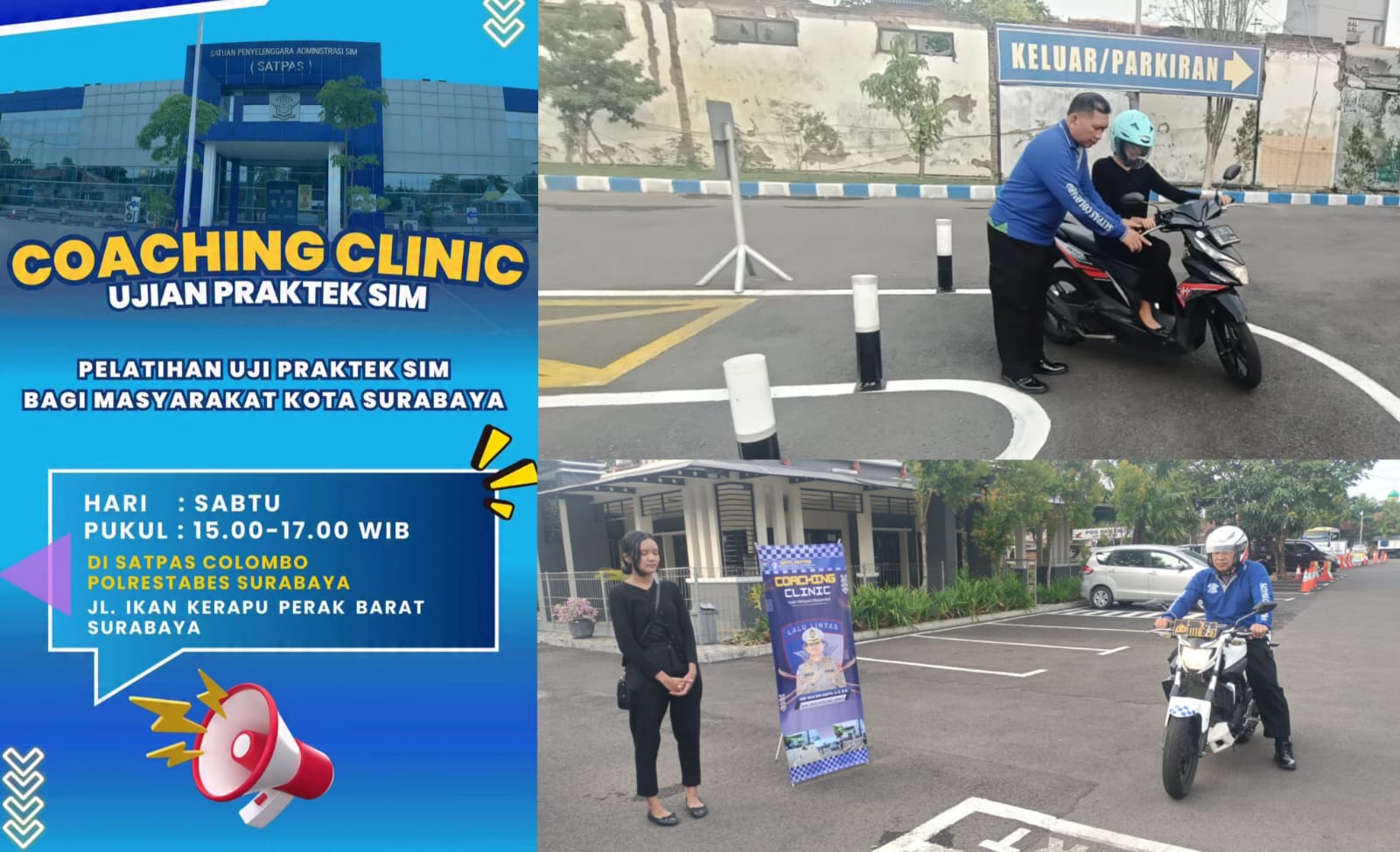SURABAYA, Memoterkini.com – Program Coaching clinic SIM merupakan program Pelatihan yang dibuat oleh Satpas (Satuan Penyelenggara Administrasi SIM) kepolisian untuk membantu calon pemohon SIM agar lebih siap menghadapi ujian praktik dan teori pembuatan SIM.