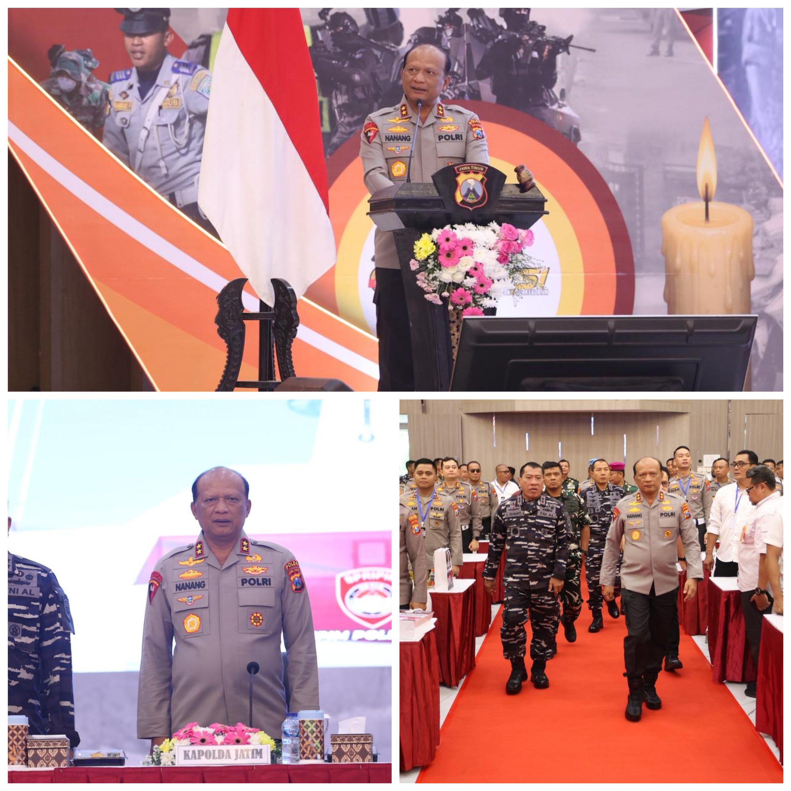 “Jawa Timur menjadi barometer nasional dalam pengamanan Natal dan Tahun Baru. Karena itu, seluruh rangkaian kegiatan masyarakat harus kita pastikan berjalan aman, tertib, dan nyaman,” ujar Irjen Nanang.