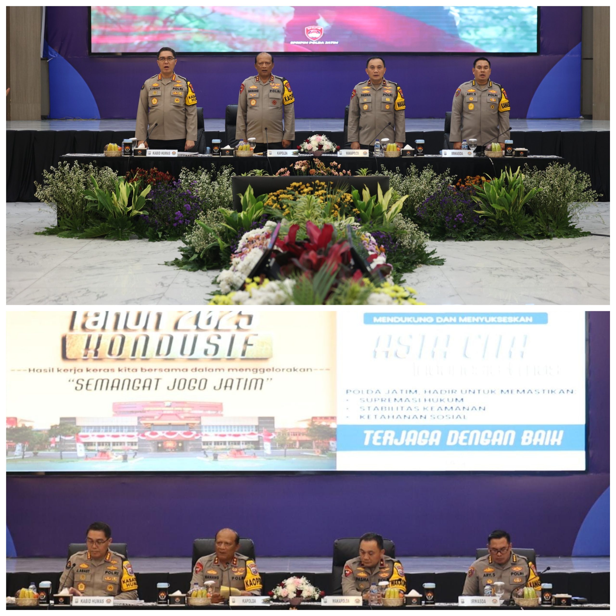 “Situasi Kamtibmas sepanjang tahun 2025 di Jawa Timur relatif kondusif,” ungkap Irjen Pol Nanang.
