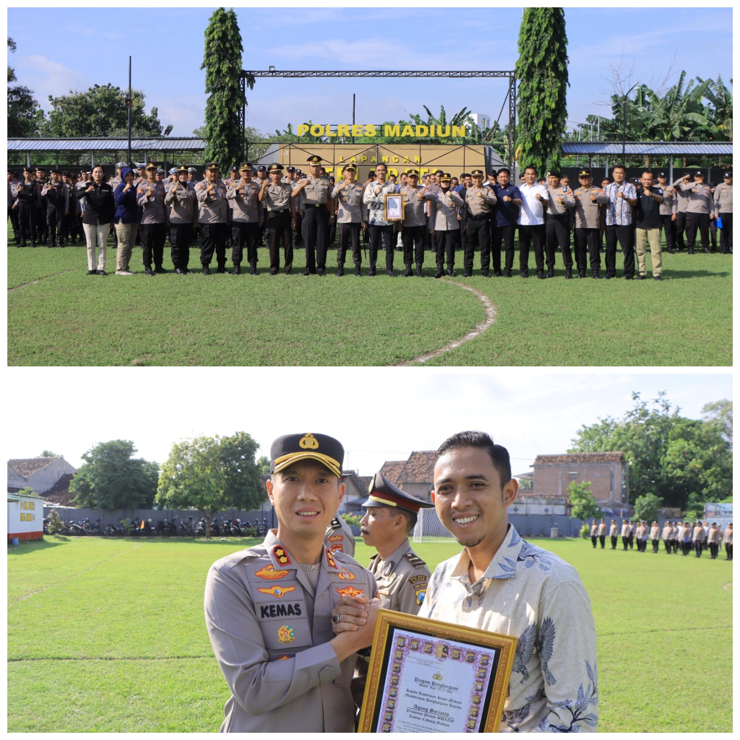 “Penghargaan ini merupakan bentuk apresiasi Polres Madiun kepada Perum Bulog Cabang Madiun atas komitmen, sinergi, dan kontribusi nyata dalam mendukung program ketahanan pangan. Sinergi yang kuat antara Polri dan Bulog diharapkan terus terjaga demi kesejahteraan masyarakat,” ujar Kapolres.