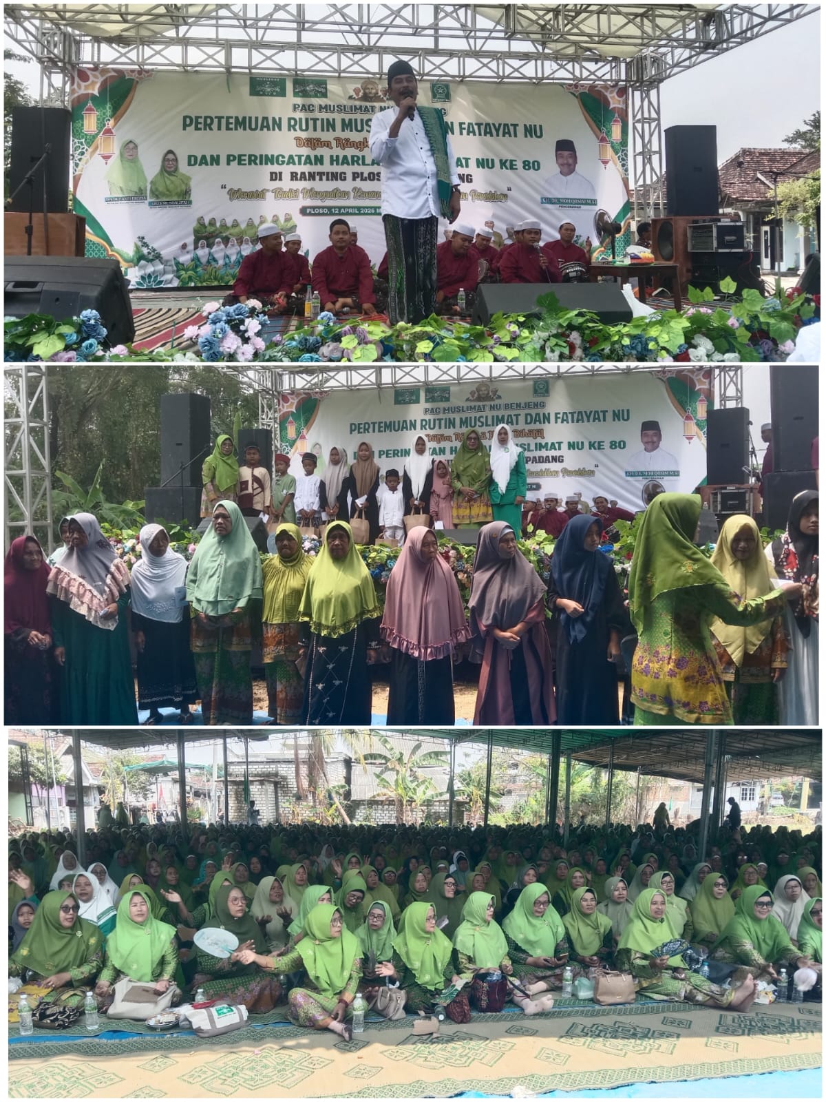 Sementara itu, Ketua Muslimat NU Kecamatan Benjeng, Dra. Hj. Asti Fauziah, S.Pd., dalam sambutannya menekankan pentingnya peran Muslimat dan Fatayat dalam pemberdayaan masyarakat, khususnya di bidang keagamaan dan sosial.