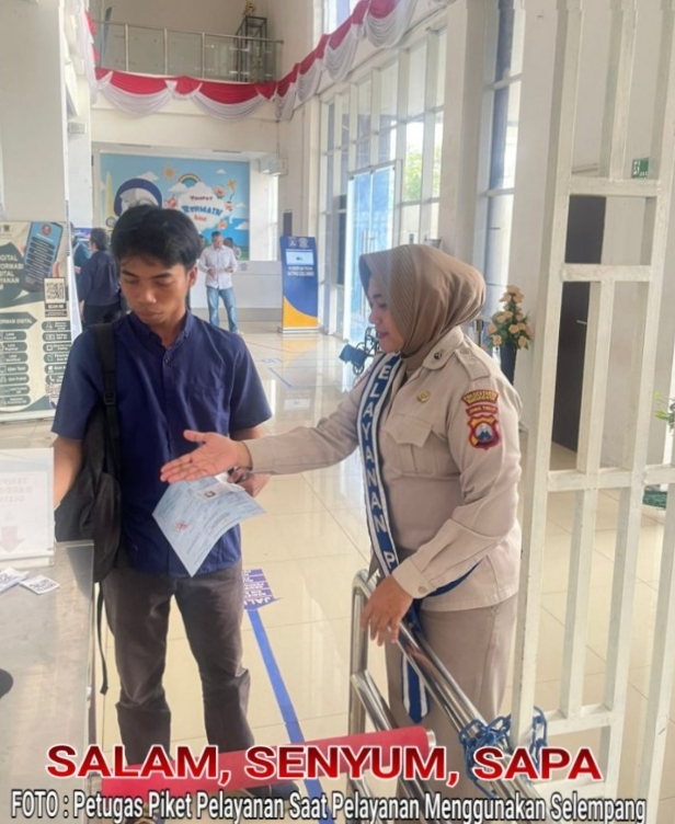 Menurut keterangan Kanit Regident Satpas SIM Colombo yakni AKP Tri Arda Meidiansyah, S.TR.K, Sik, melalui Kasubnit Ipda Hariyo Indarto, di dampingi Ipda Dani Kurniawan, serta Aipda Wage Santoso (Tim Pokja Praktek) yang berkaitan pelayanan Senyum, Salam, Sapa dan petugas Piket pelayanan menggunakan Selempang, Rabo (29/04/2026) mengatakan, Budaya 3S ini merupakan Petugas diwajibkan tersenyum, menyapa, dan memberi salam kepada masyarakat untuk menciptakan suasana nyaman.