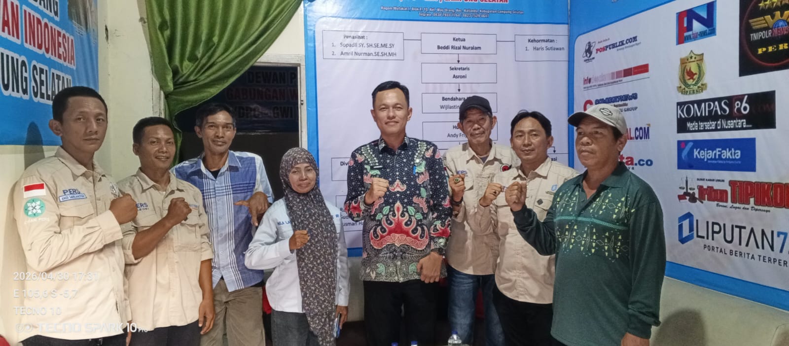Kalianda– Hubungan antara pemerintah daerah dan insan pers di Kabupaten Lampung Selatan terus diperkuat. Hal itu terlihat dalam kunjungan Pelaksana Tugas (Plt) Kepala Dinas Komunikasi dan Informatika (Kominfo) Kabupaten Lampung Selatan, Hendry Kurniawan, S.H., M.M., ke kantor Gabungan Wartawan Indonesia (GWI) Kabupaten Lampung Selatan, Kamis (30/4/2026). Siang.