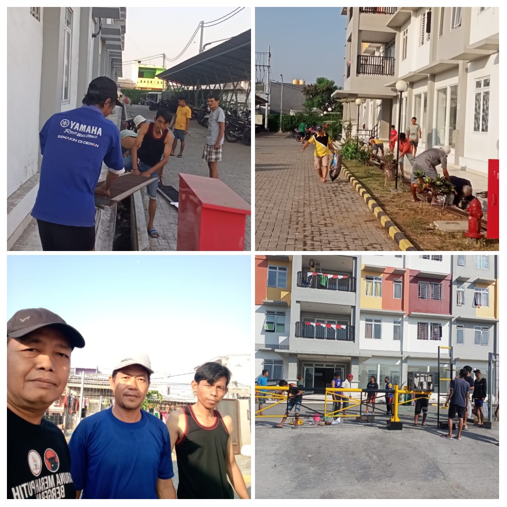 Menyambut Hari Ulang Tahun Republik Indonesia Yang Ke 78 Tahun. Warga Dan Petugas Kebersihan Rumah Susun Tambak Wedi Berbondong Bondong Kerja Bakti Bersama – Sama. Dengan Membersihkan Area Rusun Dan Memasang Bendera Merah Putih Umbul Umbul Di area Lokasi Rusun Tambak Wedi 2.