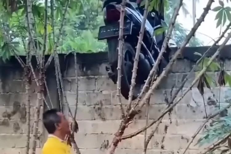 Lampung – Video sepeda motor tersangkut di atas tembok warga yang gagal dicuri kawanan maling di Kabupaten Lampung Timur, viral di media sosial, Minggu (17/8/2025).